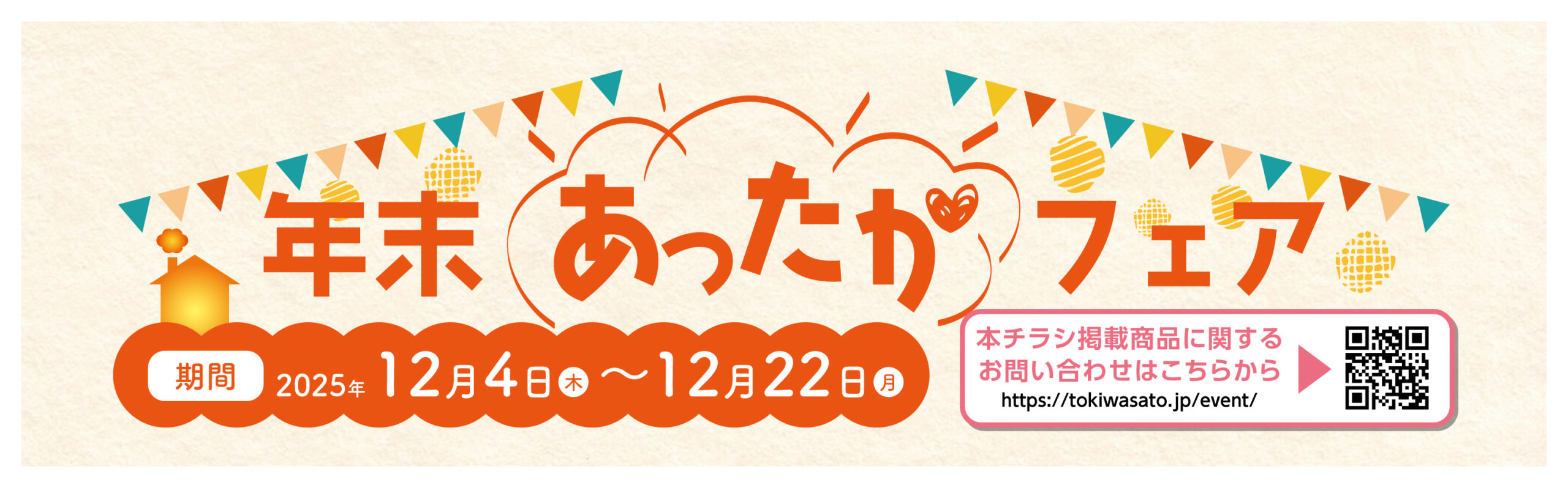 年末あったかフェアお問い合わせフォーム 以下の内容をご入力のうえ送信ボタンを押してください。ご利用の際は個人情報保護方針をご確認ください。 お名前※必須 住所※必須 E-mail※必須 お電話番号※必須 問合せ項目※必須 ご来店予約ご訪問予約 【ご来店予約日】 来店予約なし12.4(木)12.5(金)12.6(土)12.7(日)12.8(月)12.9(火)12.10(水)12.11(木)12.12(金)12.13(土)12.14(日)12.15(月)12.16(火)12.17(水)12.18(木)12.19(金)12.20(土)12.21(日)12.22(月) ●ご希望時間 9:00~10:0010:00~11:0013:00~14:0014:00~15:0015:00~16:0016:00~17:00 ※ご予約時間はご希望に添えない場合がございます。折り返しのメールにてご連絡させていただきます。何卒ご了承くださいませ。 【ご訪問予約日】 訪問希望なし12.4(木)12.5(金)12.6(土)12.7(日)12.8(月)12.9(火)12.10(水)12.11(木)12.12(金)12.13(土)12.14(日)12.15(月)12.16(火)12.17(水)12.18(木)12.19(金)12.20(土)12.21(日)12.22(月) ●ご希望時間 9:00~11:0013:00~15:0015:00~17:00 ※ご予約時間はご希望に添えない場合がございます。折り返しのメールにてご連絡させていただきます。何卒ご了承くださいませ。 チラシ掲載の商品の購入をご検討、または詳しく知りたい商品はございますか? (1)ECO ONE(エコワン)(2)ウルトラファインバブル給湯器(3)ガスふろ給湯器(4)ガスファンヒーター(SRC-365E)(5)ガス赤外線ストーブ(6)コンロ(デリシア/DELICIA)(7)コンロ(リッセ/Lisse)(8)コンロ(リプラ/repla)(9)レンジフード(XGRシリーズ)(10)食洗機(RSW-405AA-SV)(11)乾太くん 他、ご希望の商品やサービスはございますか? システムバスシステムキッチントイレ洗面化粧台ビルトインコンロレンジフードエアコンファンヒーターエネファームエコワンポータブル電源キッチン水栓シャワーずっとも電気スペシャルサポート 上記商品の説明を希望しますか はい資料のみ希望 その他ご相談・ご質問など メールフォームから申込みができない場合は event@tokiwasato.jp まで上記項目をご記入の上、メールをお送り下さい。