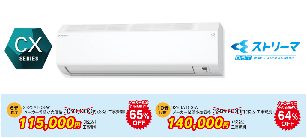 ※3 年間2gのホコリがフィルターに付着した場合(当社調べ)。エアコンの運転時間、使用環境によりお手入れ期間が異なることがあります。エアフィルターに油汚れやタバコのヤニが付着する環境では、フィルター掃除運転では汚れを取り切れない場合があります。1年に1度のお手入れをおすすめします。 ※4 試験機関:一般財団法人⦆北里環境科学センター⦆報告書No北生発 2021_0612号⦆2021_0613号⦆試験方法:25㎥(6畳)の試験空間に浮遊ウイルスを噴霧。ストリーマ空気清浄運転を行い、経過時間にあわせて浮遊ウイルス数を測定。試験対象:1種類のウイルス 試験結果:480分間運転し、99%抑制を確認。試験機:S223ATCS、S633ATCPと同等機種(S22ZTCXS、S63ZTCXP)で実施。実使用空間での実証効果ではありません。 ※5 試験機関:一般財団法人ボーケン品質評価機構 試験証明書番号:25020005144-1号 ウイルス対応方法:塗布 試験方法:JIS L 1922:2016 ウイルス感染価の測定方法。 試験結果:ウイルス液に2時間接触後に99%以上の低減を確認。1種類のウイルスにて試験を実施。 ※6 室外機の吸い込み温度。冷房・暖房能力を保証するものではありません。冬の環境において霜の付着量が多くなる場合は、暖房を止めて霜取り運転を行う場合があります。
